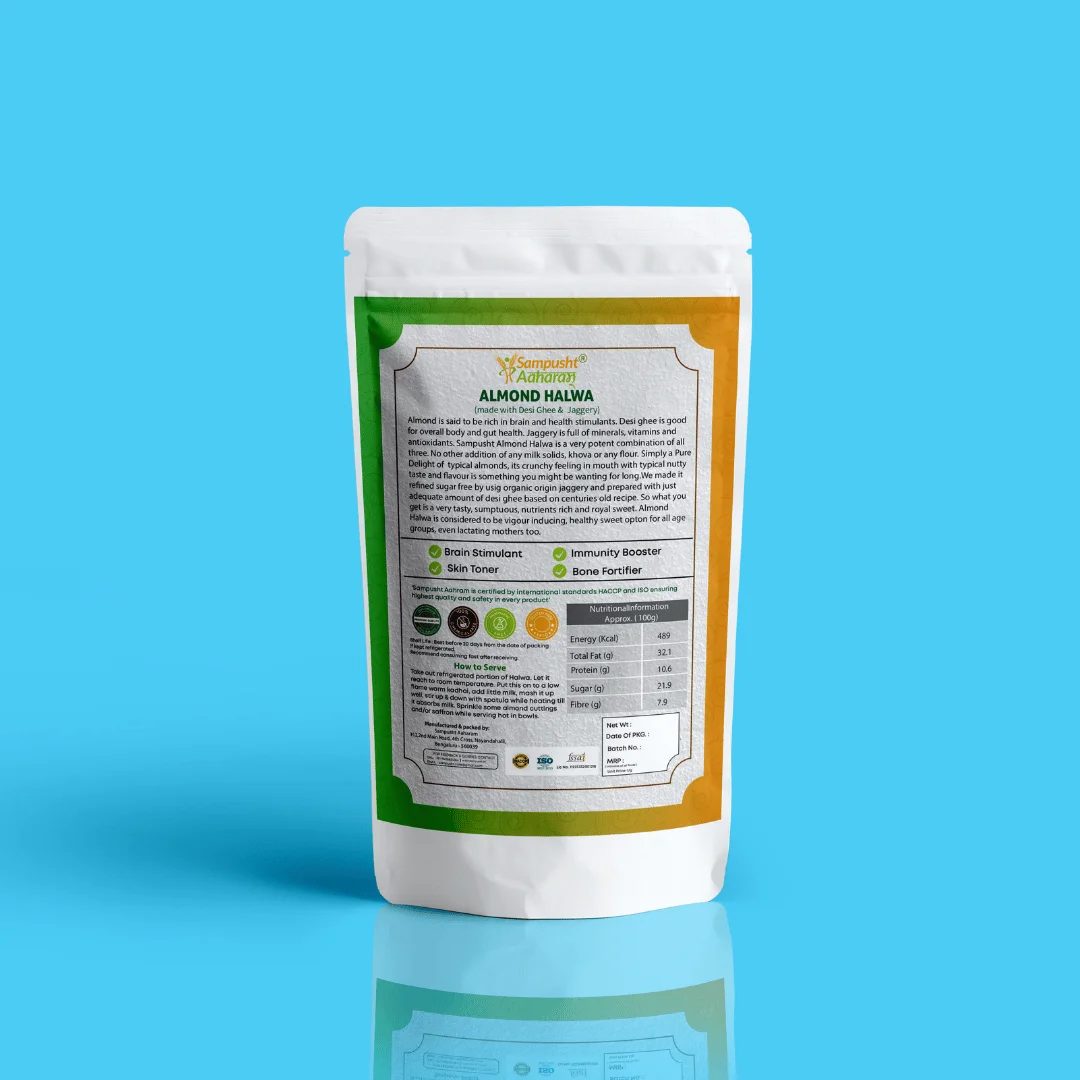 The versatility of our Almond Halwa knows no bounds. Enjoy it as a ready-to-eat dessert, pair it with your festive feasts, or share it as a thoughtful gift of wellness and taste. With Sampusht Almond Halwa, every bite is a blend of tradition, nutrition, and pure bliss.